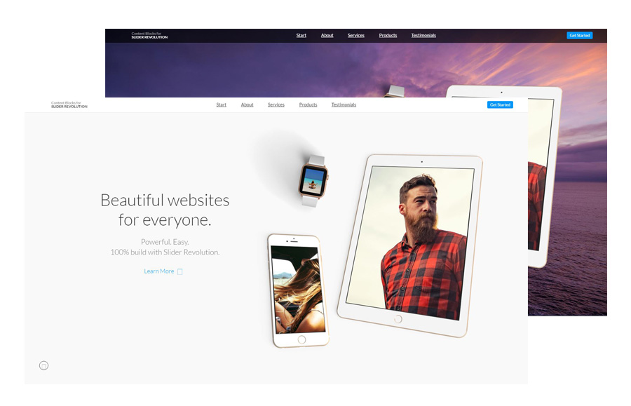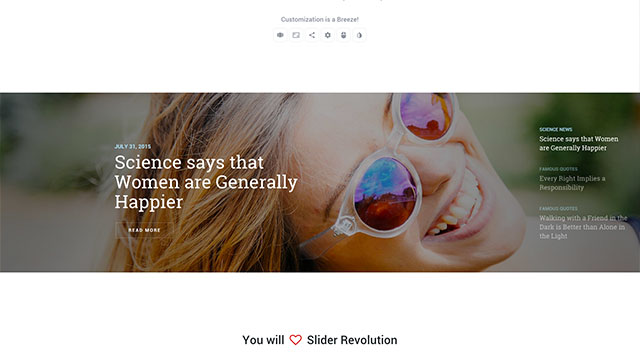 Revolution Slider is a premium plugin slider that display ur slide in amazing way. you can simply integrate these premium demo into your project. All the sliders demon are included in Eastern. Click the below link to view all demo.